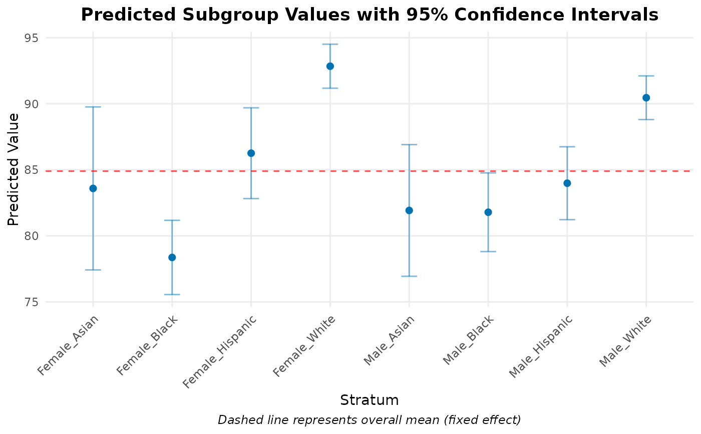 "predicted": Predicted values for each stratum with confidence intervals